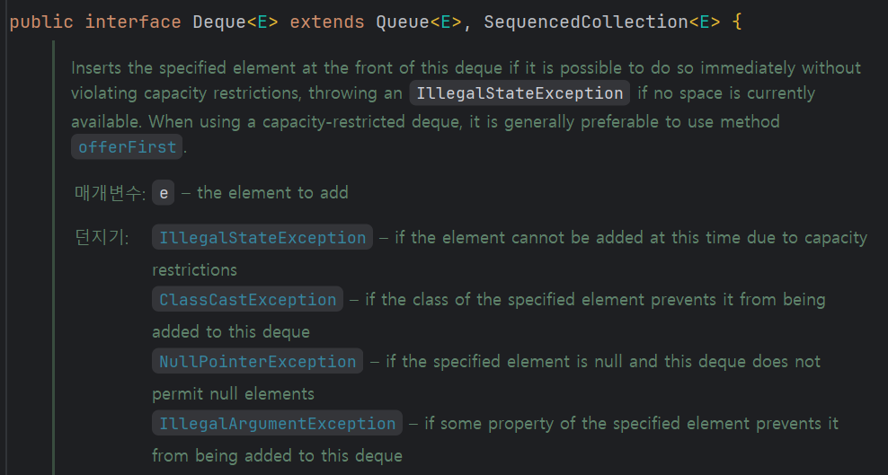 이걸 보면 Deque는 Queue의 하위 인터페이스임을 알 수 있다.
