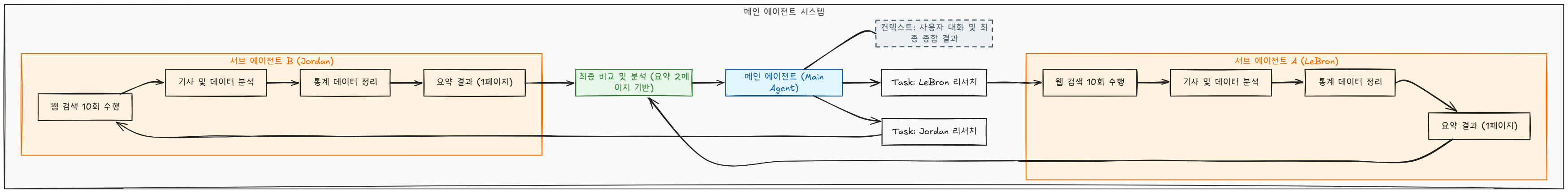 "LeBron James와 Michael Jordan을 비교 분석해줘"라는 요청을 예로 들면,